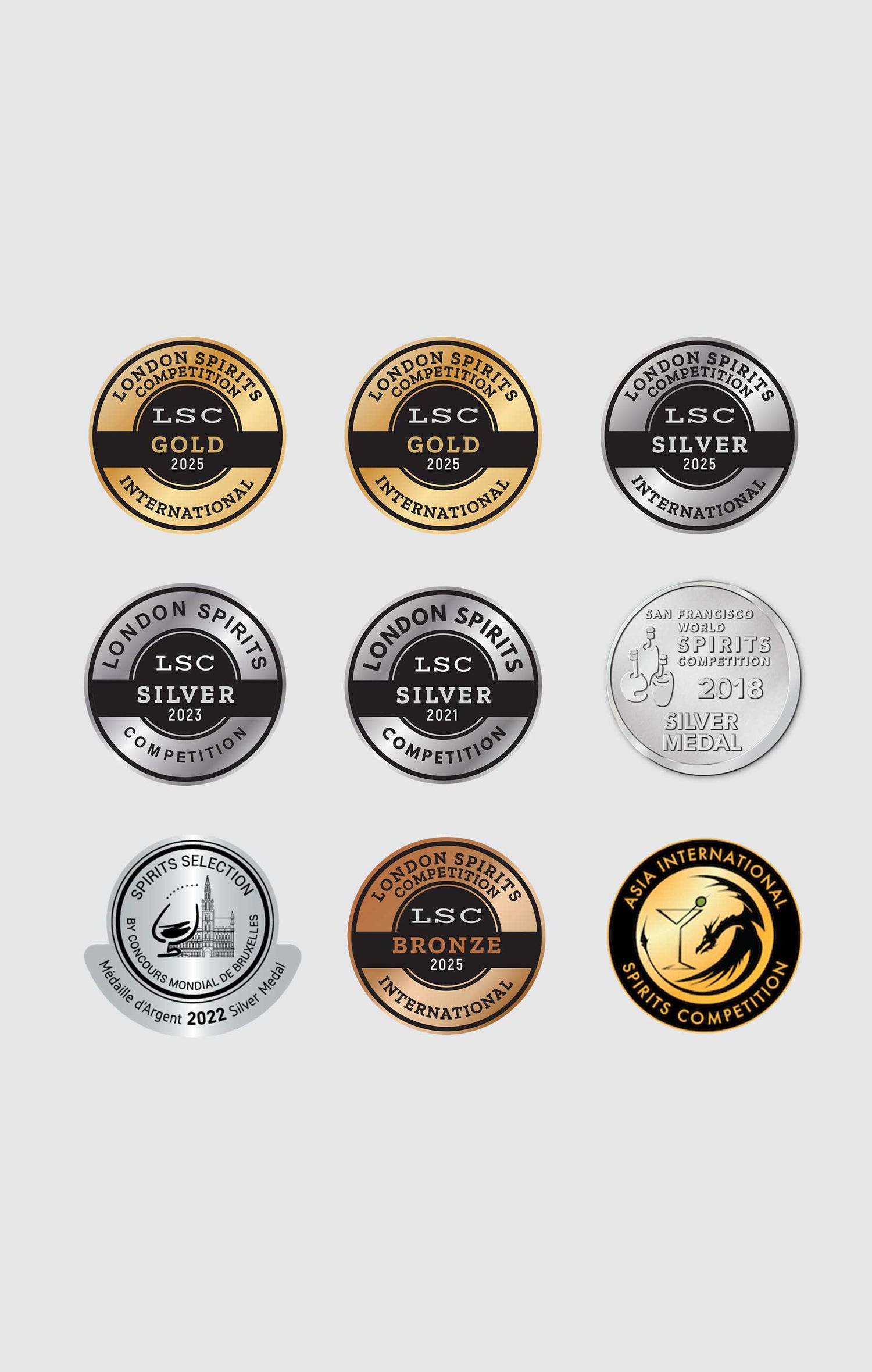 Nuestra ginebra ha recibido medallas de plata en el London Spirits Competition 2021 y 2025, además de ser nombrada Ginebra Española del Año en el Asian International Spirits Competition de Hong Kong en 2021 y premiada en San Francisco en 2018.
